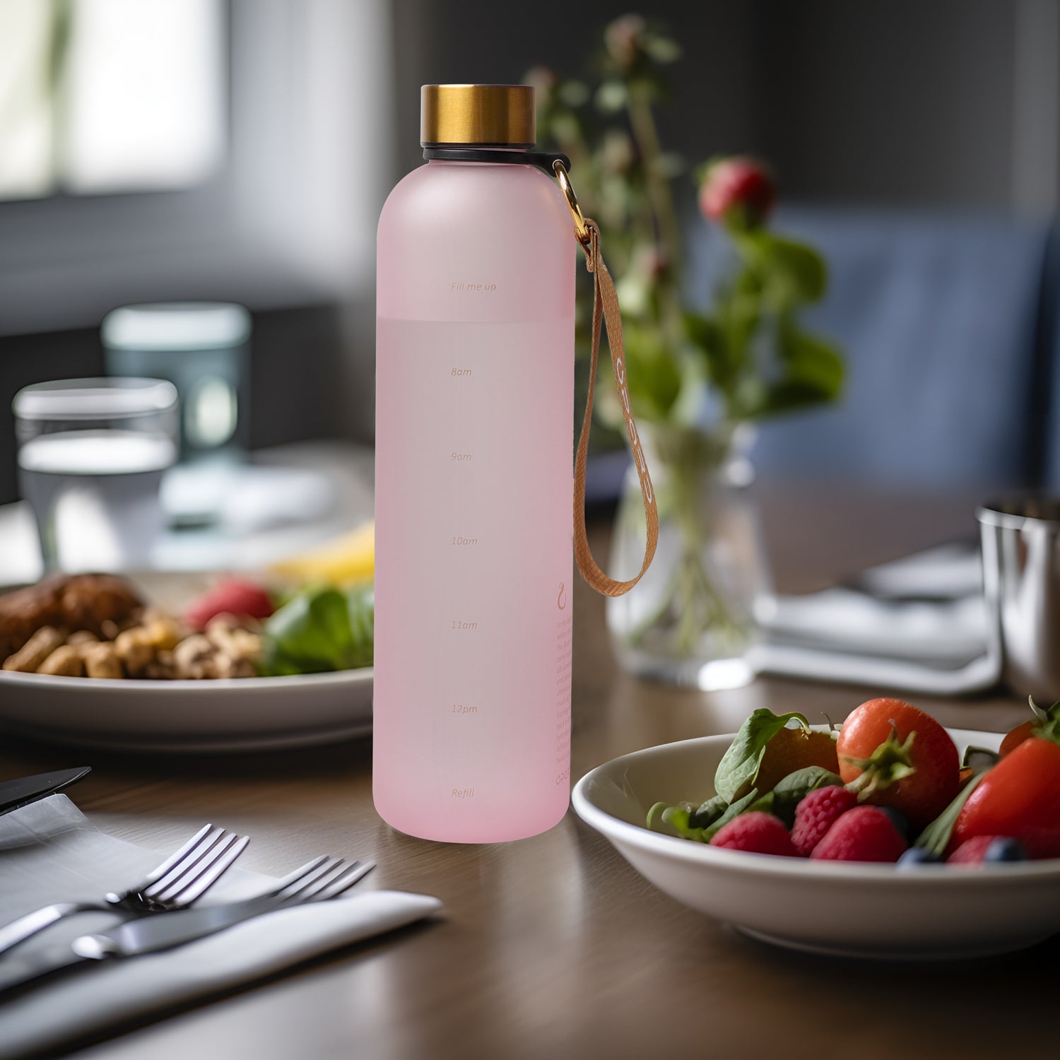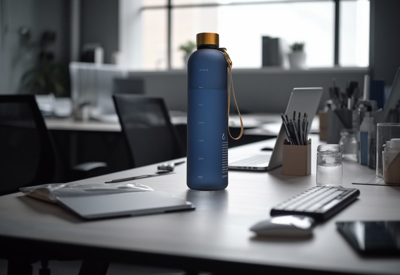 A striking blend of simplicity and sophistication, this water bottle boasts a timeless, sleek design that's effortlessly stylish.